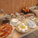 Gästerna kan testa frukostbuffé med ost och färska bakverk.